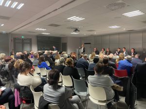 Convivialité de rigueur ce 2 décembre 2025 au MEDEF Lyon-Rhône, à l’occasion de la réunion de mobilisation des conseillers employeurs du Rhône, issus des conseils de prud’hommes de Lyon et de Villefranche sur Saône. Près d’une centaine de conseillers avait en effet répondu présent à l’invitation des principales organisations patronales du département : MEDEF, mais aussi CPME, U2P, FDSEA. Une réunion qui présentait cette année un caractère exceptionnel en raison du renouvellement pour les quatre prochaines années (2026-2029) de l’ensemble des conseillers actuellement en place, et qui achevaient un mandat de 3 ans (2023-2025).