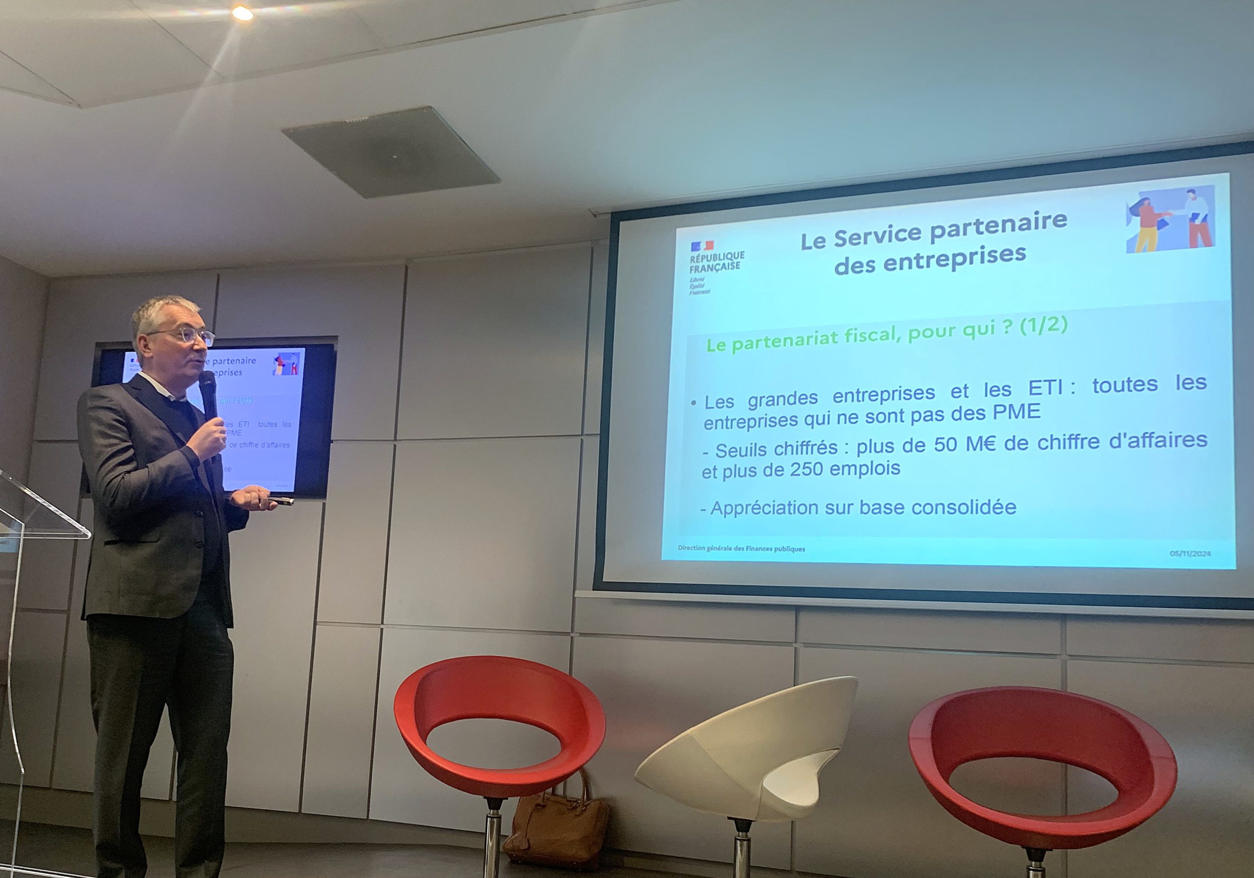 C’est à Hélène LAVOISIER, administratrice de l’Etat chargée de la mission « relation de confiance » au sein de la DGFIP, et Anne-Claire COUTANT, directrice du département entreprises et particuliers au sein de la DRFIP, qu’il revenait dans un premier temps de présenter le dispositif AFPME. Outre la sécurité juridique qu’il apporte, ce dispositif donne entière satisfaction aux entreprises qui constatent un changement culturel profond de l’administration vers un soutien aux entreprises, comme en attesteront les témoignages des deux dirigeants venus illustrer le propos. Ainsi, pour Serge BINET, dirigeant de PRIM’X, éditeur de logiciels de chiffrement, il y a eu un vrai effet « wahoo » quand le représentant de l’administration fiscale s’est présenté à lui en lui demandant « comment puis-je vous aider ? ». De même, Roméo de PASCALIS, dirigeant de GO TO MARKET (conseil en innovation), s’est félicité de la relation simple et directe qui s’est instaurée naturellement avec ses interlocuteurs, lui permettant d’obtenir très rapidement des réponses aux questions (parfois complexes) qu’il se posait. Rappelons cependant que cette relation de confiance n’exclut en rien le contrôle (fiscal), lequel relève d’un service différencié de la DRFIP. Autre point rappelé en chœur par Alexandra DELBARRE et Stéphanie GRESLE, expert-comptable : l’entreprise peut tout à fait être assistée de ses conseils habituels (avocat et/ou expert-comptable), ces derniers pouvant d’ailleurs agir en parfaite interopérabilité.