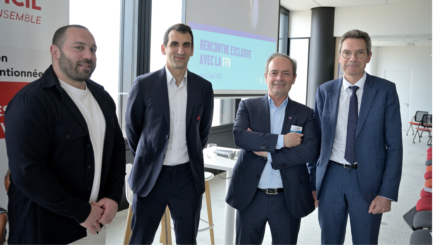 Le temps fort de la soirée ? Une rencontre exclusive avec deux figures du monde du rugby : Jérémie Lecha, CEO de la Fédération Française de Rugby (FFR), et Jean-Marc Doussain, ancien joueur international. À travers leurs témoignages, les invités ont pu découvrir les coulisses d’une fédération emblématique, mais aussi les passerelles évidentes entre sport de haut niveau et vie entrepreneuriale : persévérance, audace, esprit d’équipe.